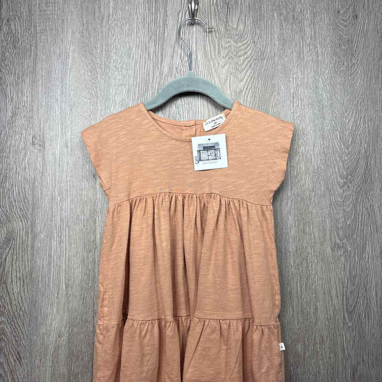 peach short sleeve dress with ruffled hem, buttons on back, cotton #prelovedfebruary2026