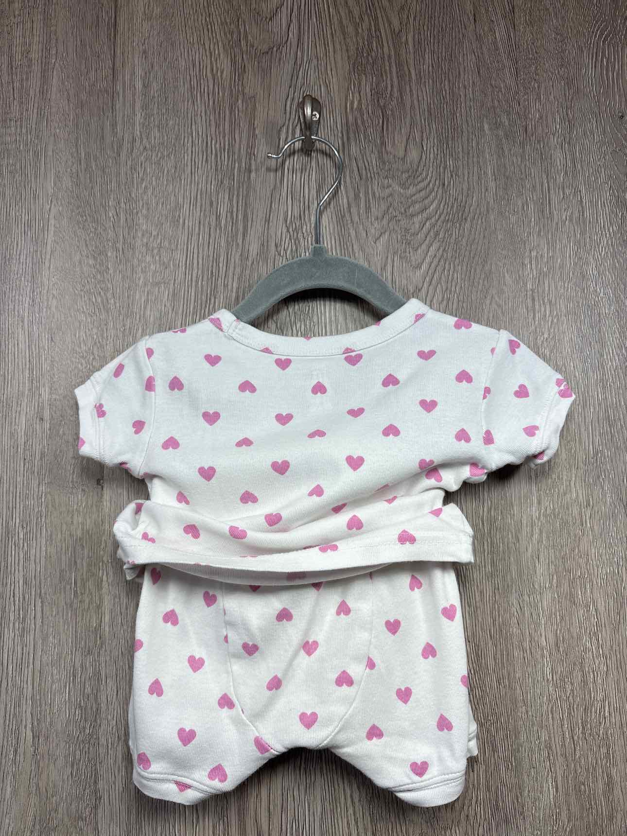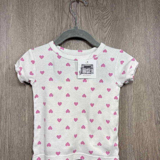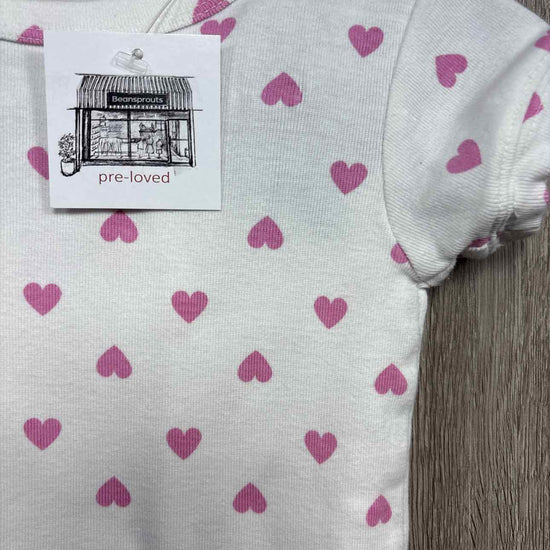 white short sleeve/shorts pajama with pink hearts print, organic cotton #prelovedfebruary2026