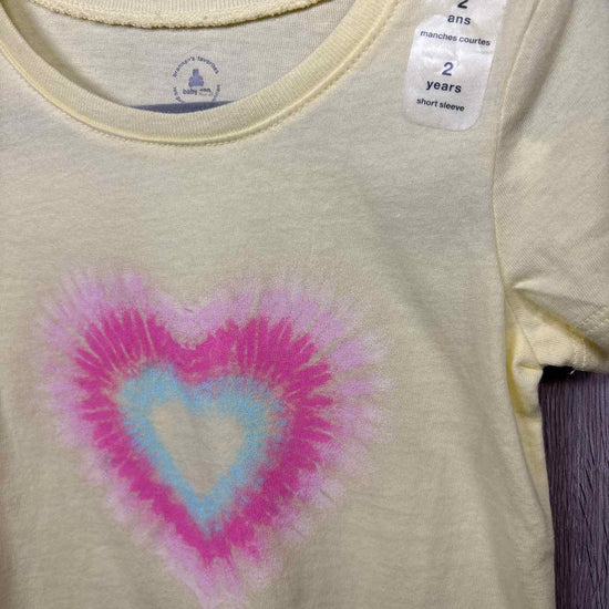 yellow short sleeve shirt with multi color heart print, cotton, new with tag #prelovedfebruary2026