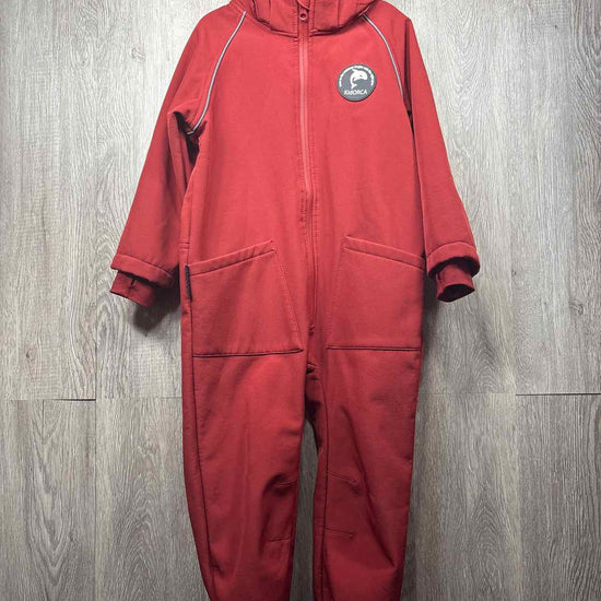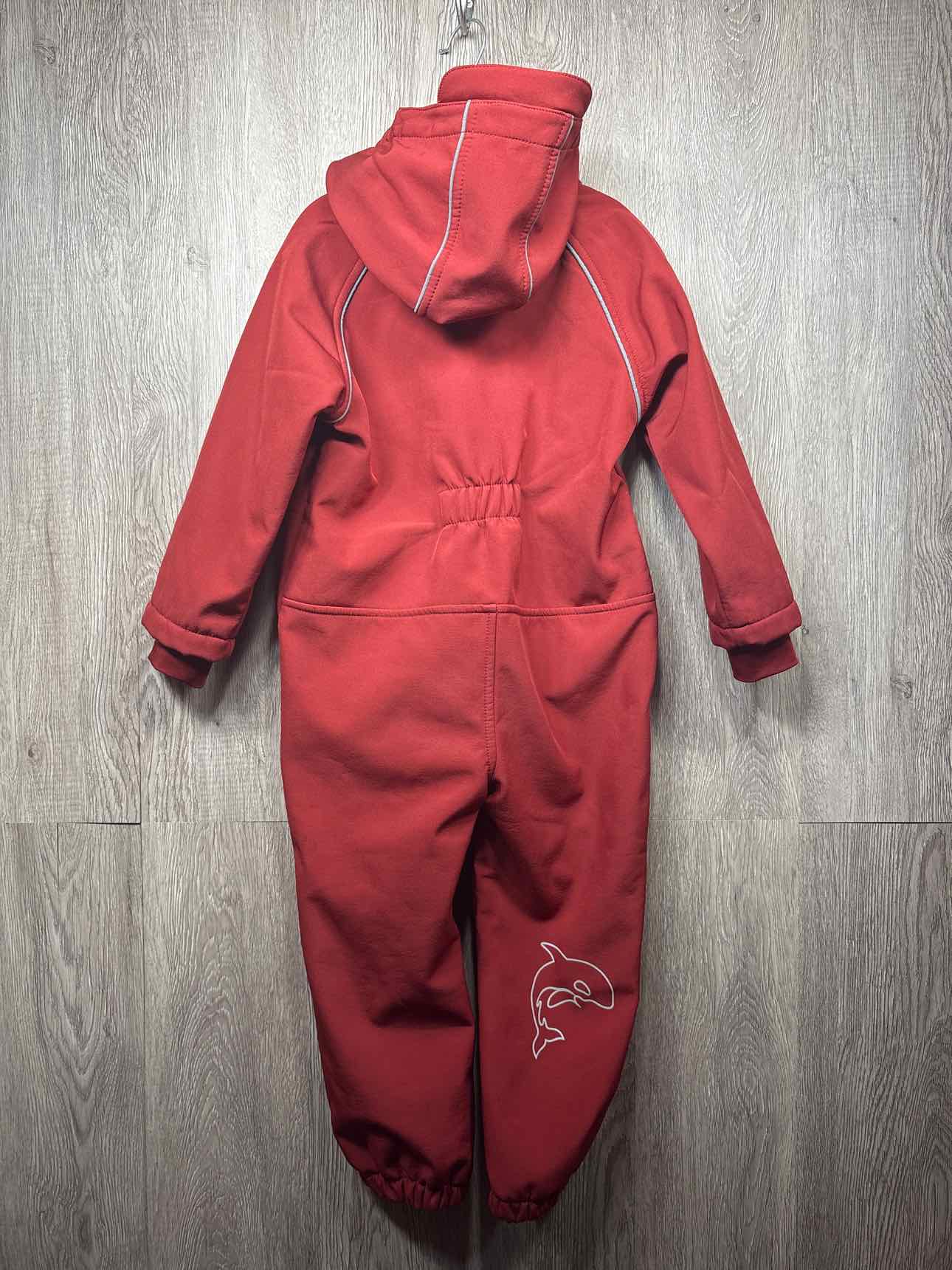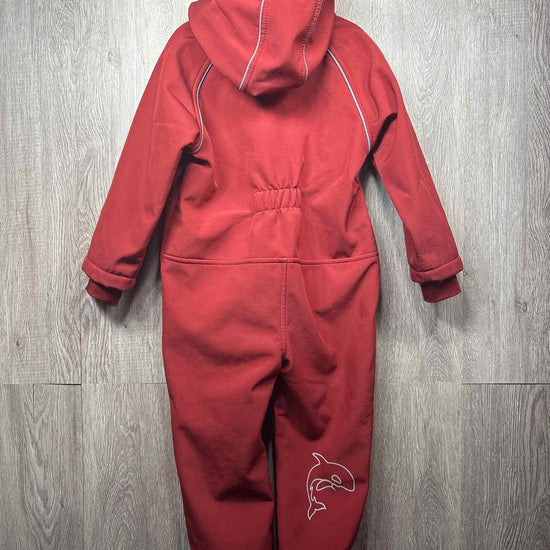 burgundy hooded soft shell water resistant onepiece with zipper for closure, removable hood, fleece inner lining, two pockets on front, polyester #prelovedfebruary2026