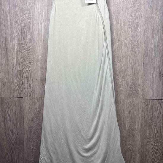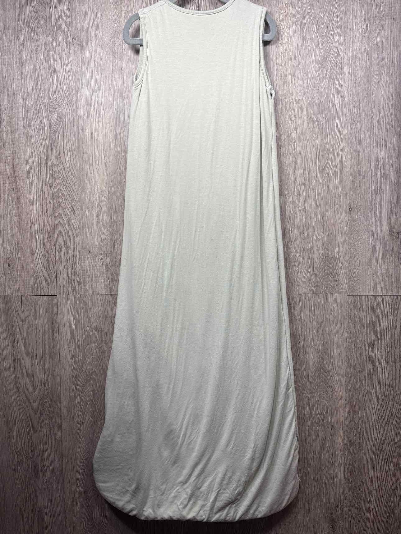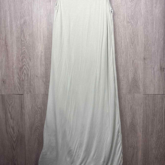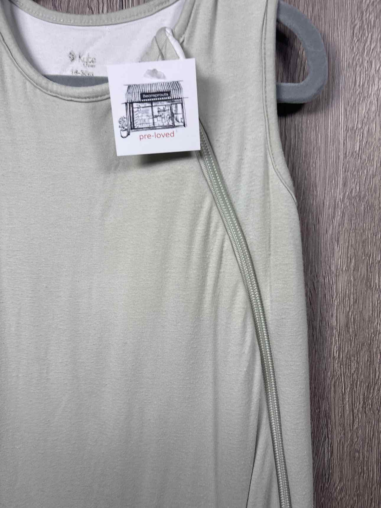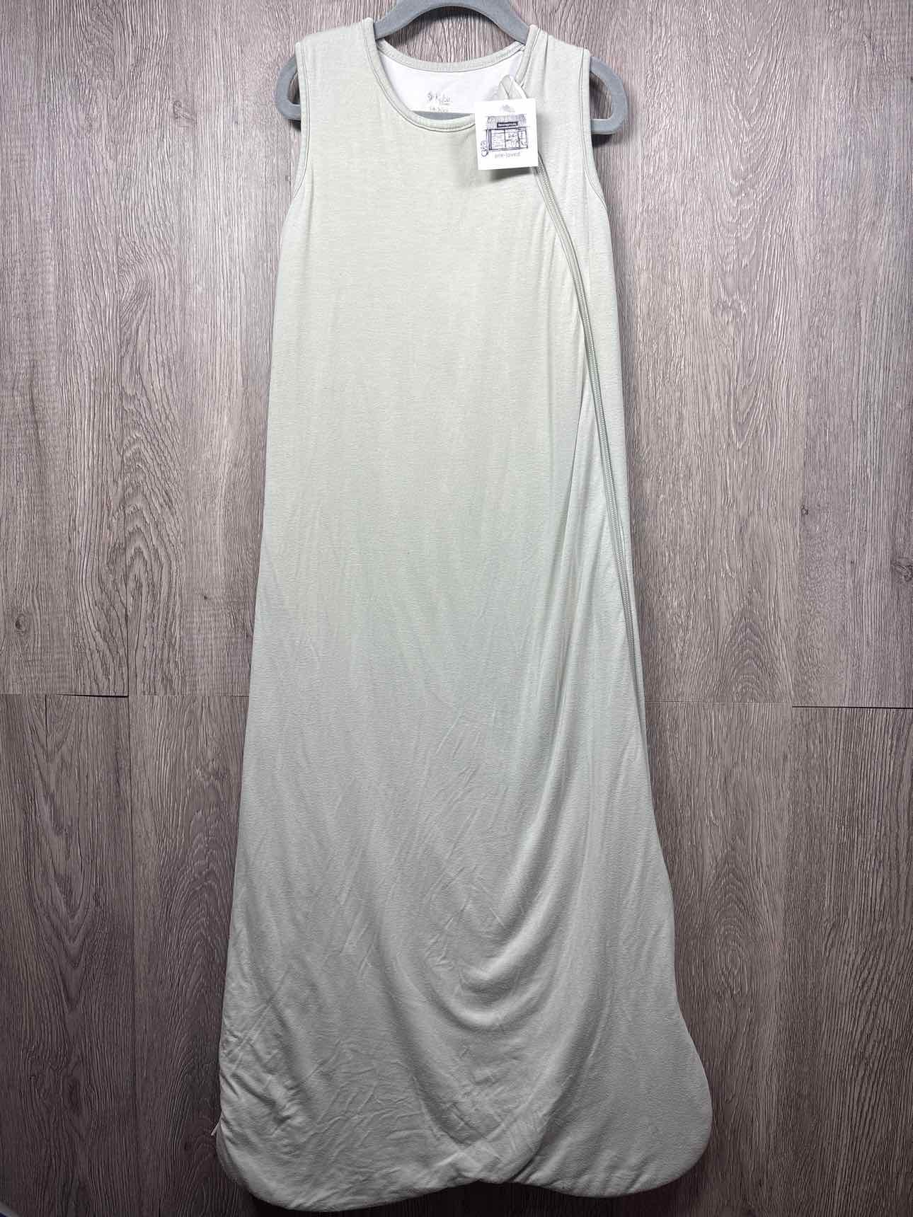 light sage green sleeveless sleeping bag with white inner lining, zipper for closure, bamboo/spandex, filling polyester, guessing 1.0 tog #prelovedfebruary2026