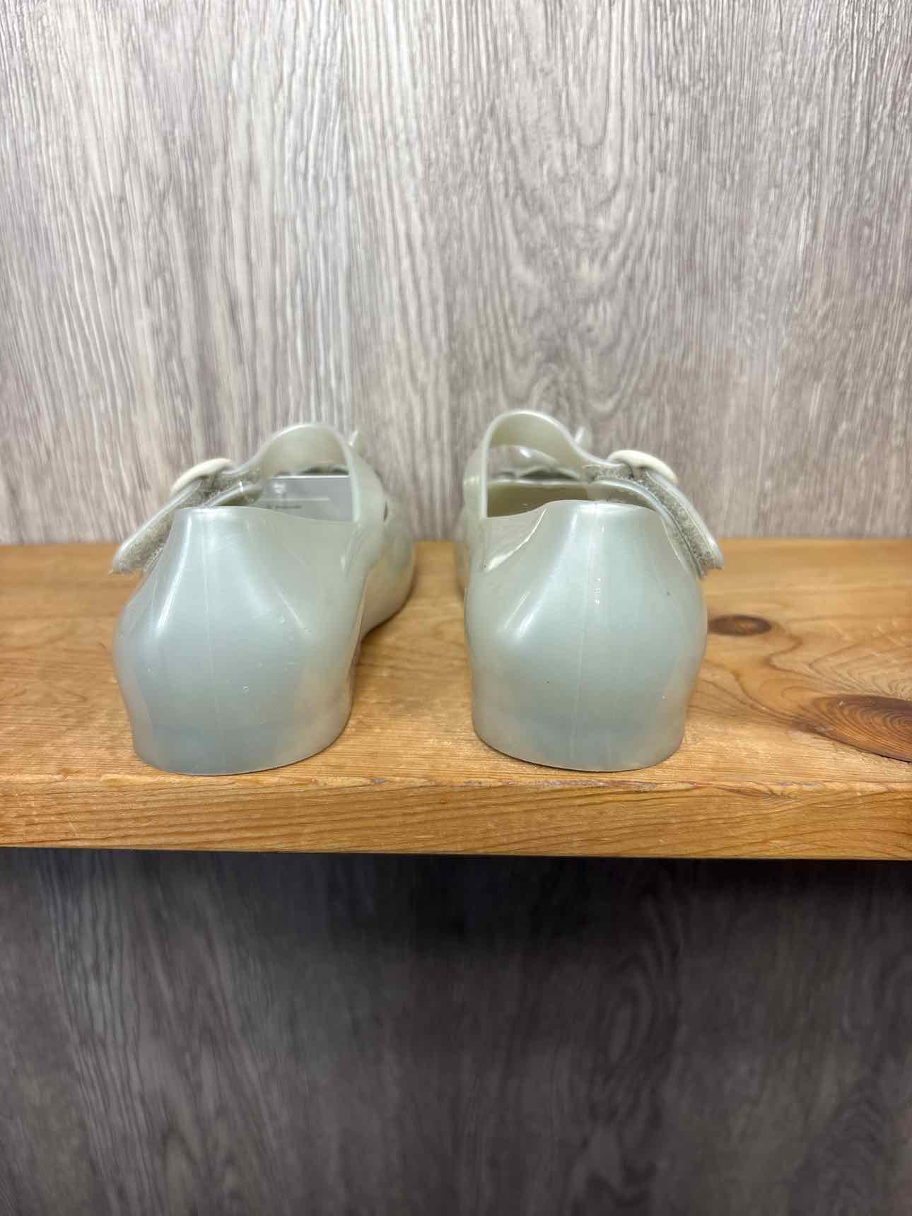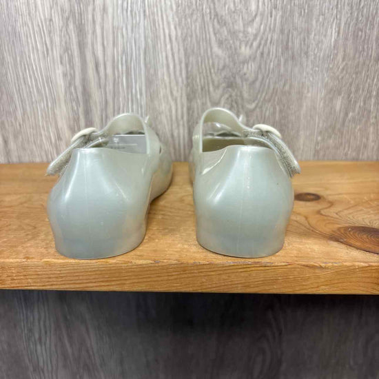 sage green rubber mary jane with flower on front, velcro for closure #prelovedmarch2026