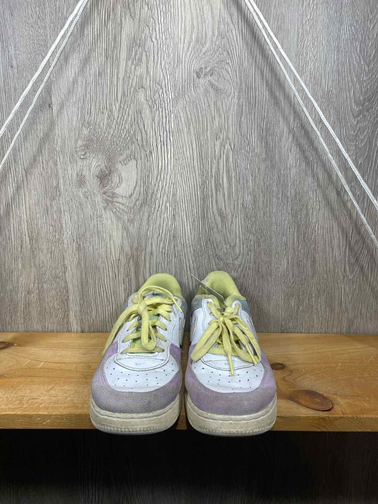 white/lilac/blue sneakers with yellow laces for closure #prelovedjanuary2026