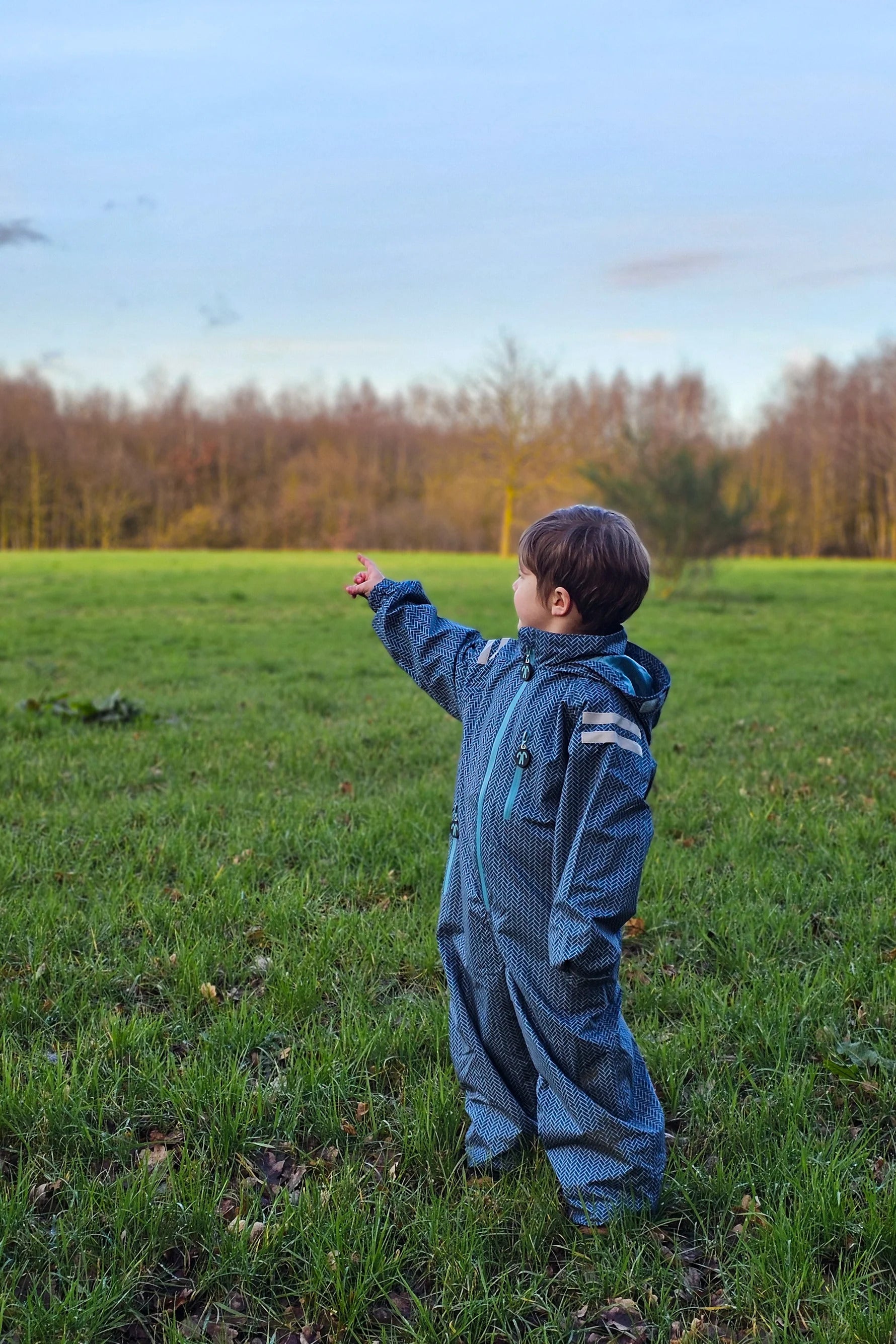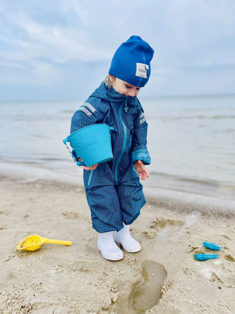 The Ducksday rainsuit is completely waterproof, but also breathable so you will not sweat in it. It is foldable into a compact pocket (inside the left leg), so you can carry it in a backpack. The elastic foot stirrups and the adjustable sleeves and hood make sure the rainsuits stays in place during all activities. The reflective tape on the shoulders ensures a higher visibility in the dark.