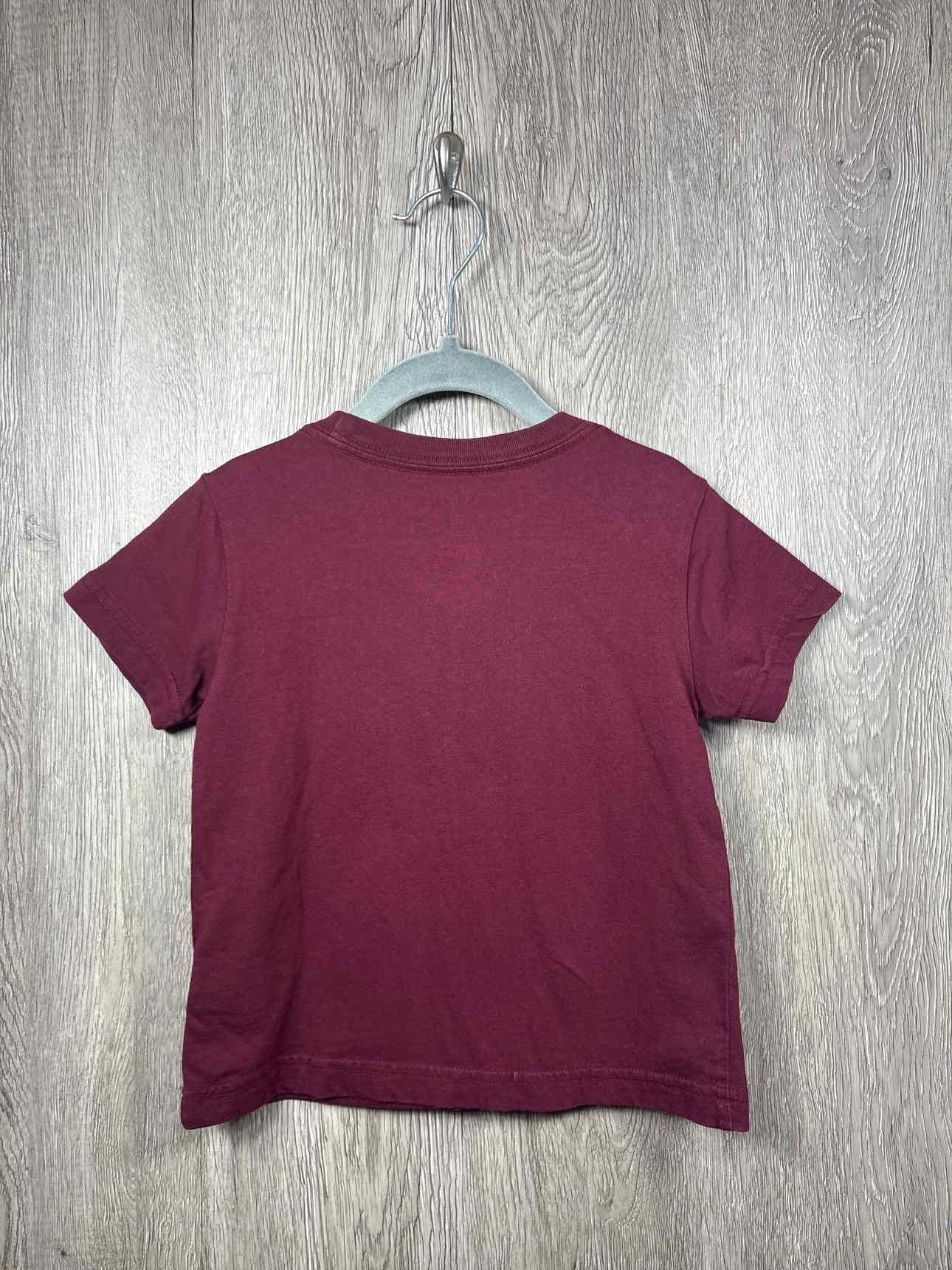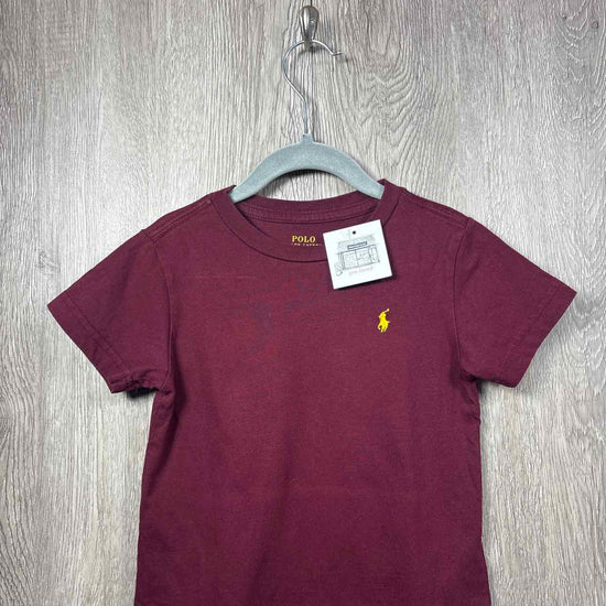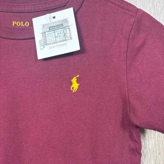 burgundy short sleev shirt with yellow logo on left side, cotton #prelovedfebruary2026