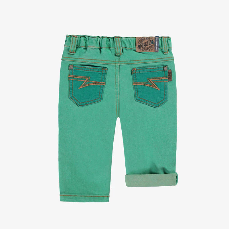 Turquoise regular-fit jeans that will add a stylish touch to their wardrobe with its unique color. Made of stretch denim, it is comfortable for playing all day.